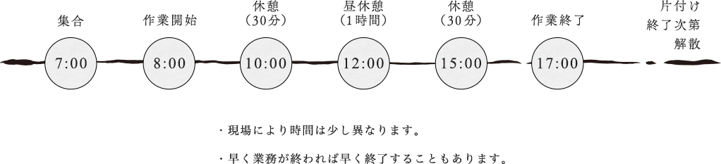 また、未経験の方でも雑用扱いはしません。現場で丁寧に指導します。朝が早く、体力を使う仕事のため辛いこともありますが、従業員で力を合わせて楽しく取り組んでおります。若い力が活躍しており、食事や遊びに行くこともあるほど風通しが良い環境です。